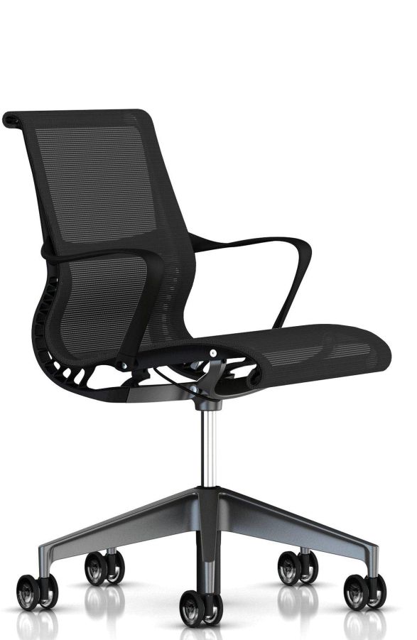 De Herman Miller Setu is gemaakt voor werkplekken waar je vaak wisselt van houding en plek, maar wel direct prettig wilt zitten. Studio 7.5 ontwierp Setu vanuit observatie van hoe we nu werken: minder formeel, meer beweging, en sneller schakelen tussen overleg, concentratie en kort zitten. Het resultaat is een stoel met een opvallend lichte uitstraling en een duidelijke belofte: zitten zonder gedoe, maar wél met ondersteuning. Wat Setu technisch onderscheidt, is dat de stoel vrijwel zonder klassieke instellingen toch met je meebeweegt. De Kinematic Spine buigt en veert mee en gebruikt materiaal en geometrie in plaats van een traditioneel kantelmechanisme om weerstand en ondersteuning te regelen. Daar hoort de ademende Intercept Suspension bij, die druk verdeelt en relatief temperatuur neutraal aanvoelt. Ook qua reputatie heeft Setu een stevig startpunt. Bij de introductie rond 2009 kreeg de Setu collectie erkenning op NeoCon, met een Gold award in de categorie Conference Seating en een Silver award voor lounge varianten binnen dezelfde collectie. Daarmee is de Setu vaak een slimme keuze voor wie een betrouwbare, designmatige stoel zoekt die snel klopt, bijvoorbeeld voor vergaderruimtes, flexplekken of een strak thuiskantoor.